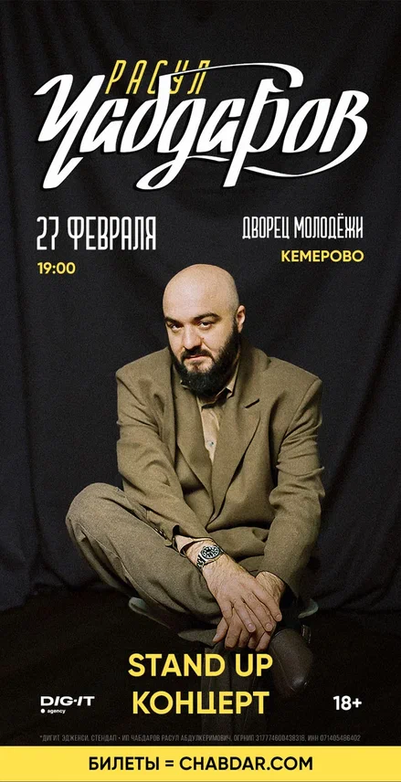 Stand Up Концерт Расула Чабадарова Приглашаем всех ценителей хорошего юмора и ярких эмоций провести вечер вместе с комиком Расулом Чабдаровым! Дата: 27 февраля Время начала: 19:00...