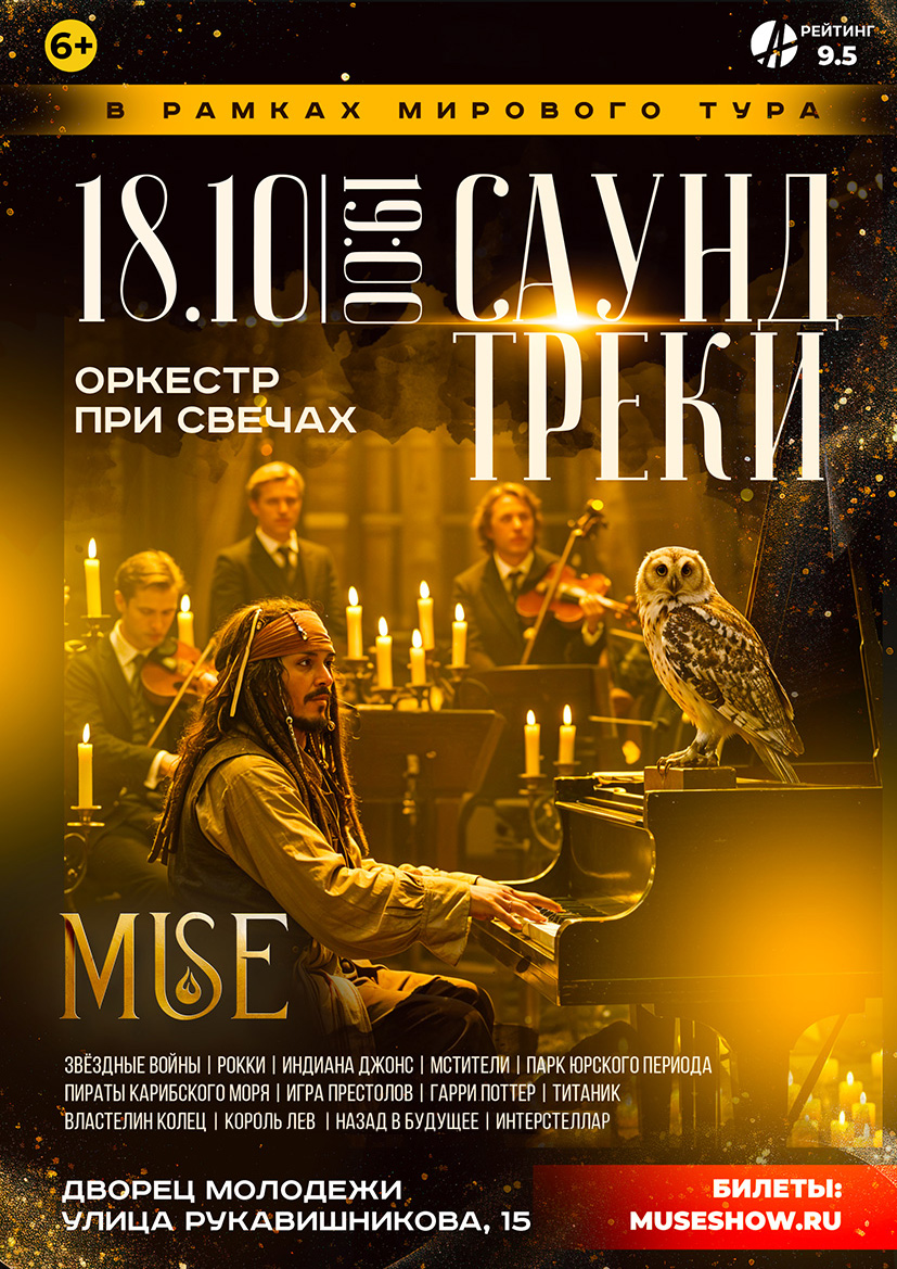 Кемерово, 18 октября — шоу саундтреков в сиянии тысячи свечей от оркестра MUSE Погрузитесь в волшебную атмосферу любимых мелодий из культовых фильмов в исполнении живого...